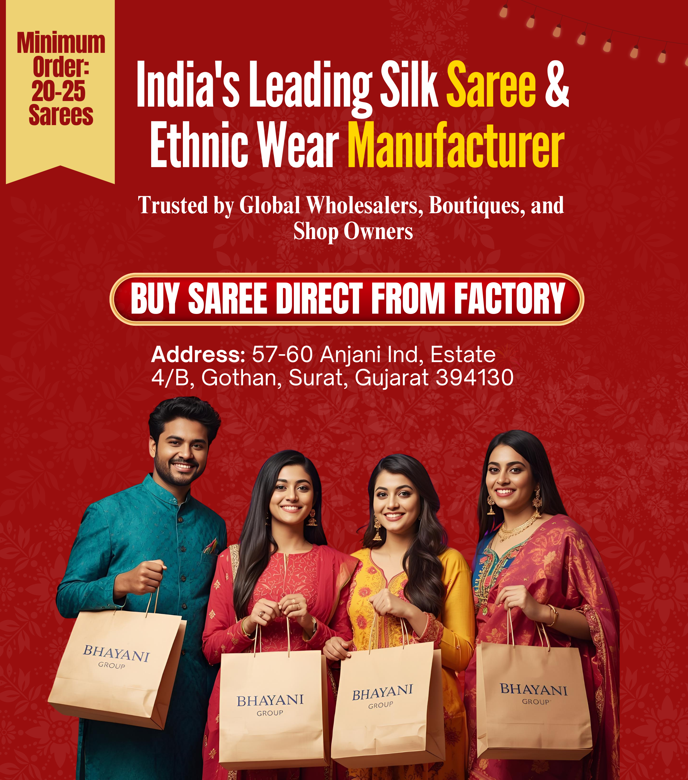 Bhayani Textiles Group is a leading name in the world of silk saree manufacturing, proudly based in Surat, the textile hub of India. With years of experience and a deep-rooted...