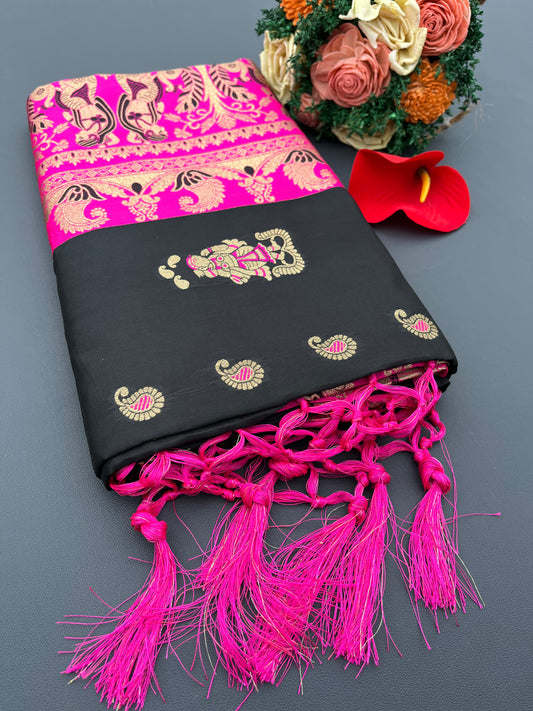 BLACK & PINK SOFT SILK BANARASI SAREE