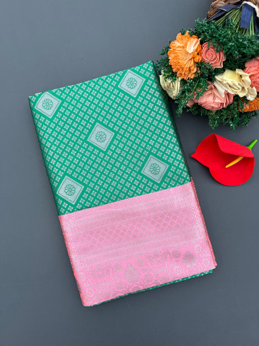 GREEN & PINK SOFT SILK BANARASI SAREE