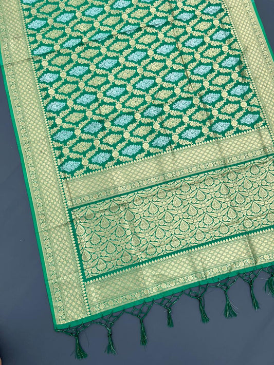 GREEN & YELLOW SOFT SILK BANARASI SAREE